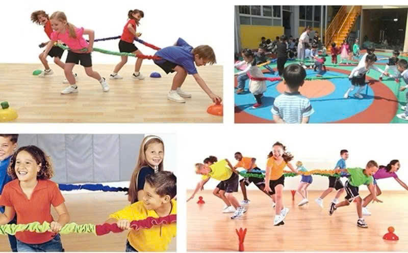 Dây co giãn nhiều màu không chỉ là đồ chơi vận động giúp bé rèn luyện sức khỏe, phối hợp nhịp nhàng tay – chân – mắt, mà còn là dụng cụ âm nhạc tuyệt vời: