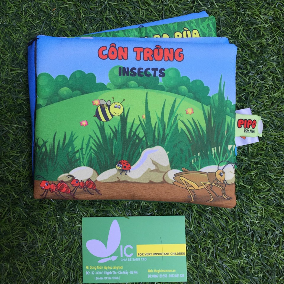 Sách vải Pipo côn trùng phù hợp cho các bé làm quen khái niệm cơ bản về các loài côn trùng. Sách vải PIPO được thiết kế phát tiếng kêu sột soạt Là đồ chơi thông minh, giáo dục sớm.