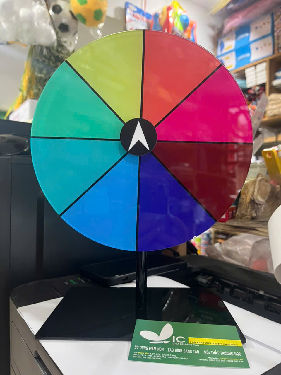 Giáo viên có thể viết chữ cái, số, từ vựng, màu sắc, hình ảnh lên từng ô quay để tổ chức trò chơi cho học sinh.