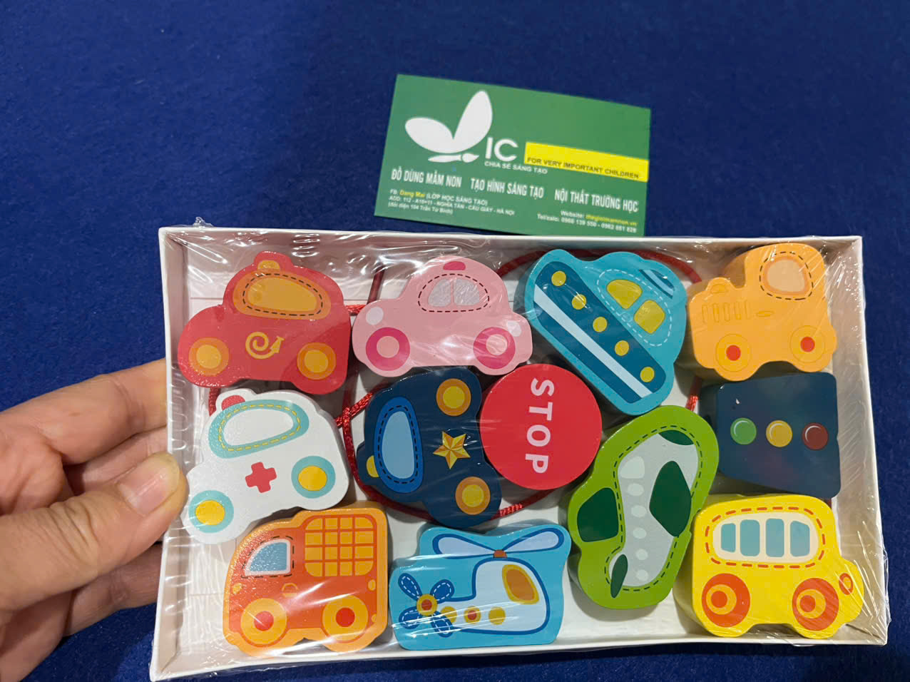 🎁 Mỗi set gồm 12 miếng gỗ hình thù đáng yêu + 1 dây xâu có đầu gỗ, với các chủ đề phong phú: